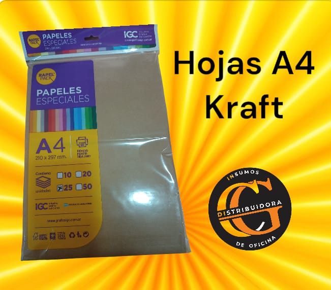 PAPEL ESPECIAL KRAFT/MISIONERO A4 180 GRAMOS X 25 UNIDADES
